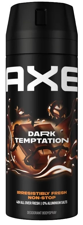 - Csábító illata van, akár a csokoládénak! Mindig jó döntés, hisz ki tudna ellenállni az édes élménynek? Segít védeni a baktériumok okozta kellemetlen szagok ellen és az illata is ellenállhatatlan. Válaszd a megújult Axe Dark Temptation dezodort a hosszan tartó frissességért!