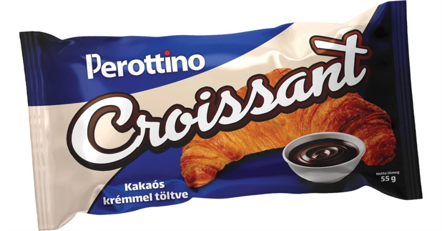 A "Croissant Perottino 55g Csokis" egy 55 grammos, kakaós krémmel töltött croissant.