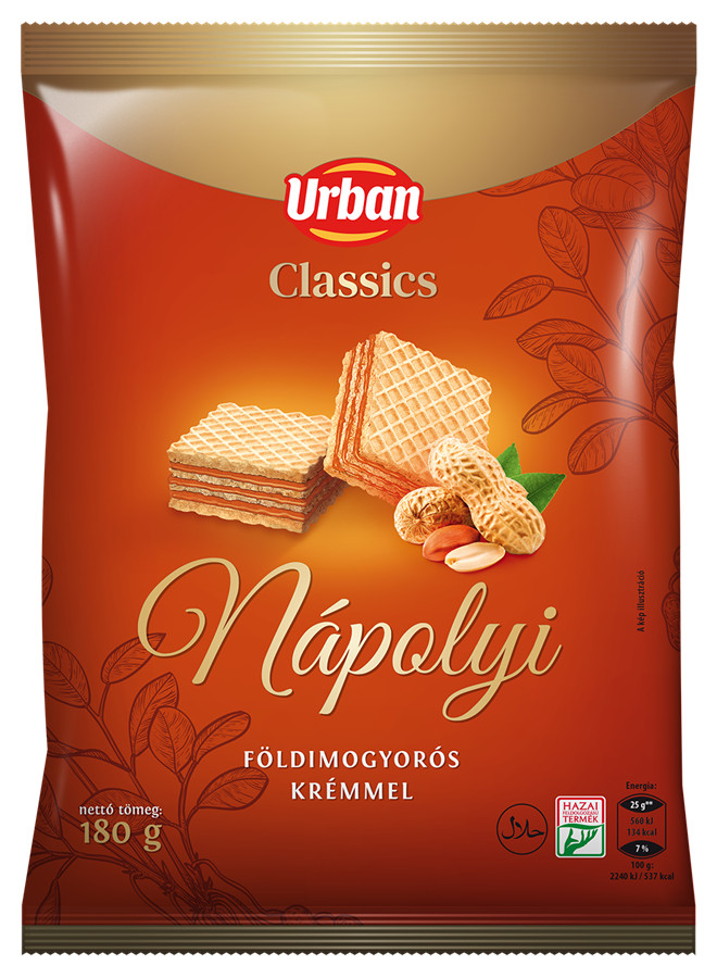 Földimogyorós krémmel (65%) töltött ostya.